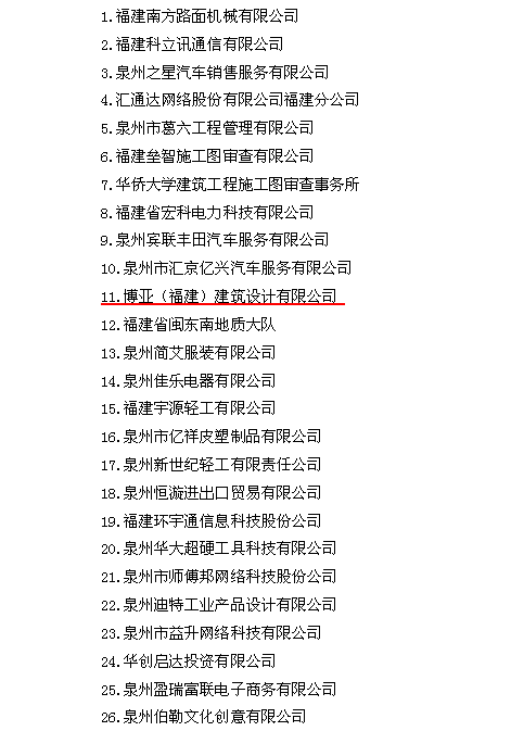2019年2月28日,在泉州市豐澤區(qū)召開的全區(qū)工作大會(huì)上,博亞(福建)建筑設(shè)計(jì)有限公司榮獲“豐澤區(qū)2018年度納稅大戶”稱號(hào),同時(shí)還被確認(rèn)為“2019年度區(qū)級(jí)重點(diǎn)企業(yè)”。